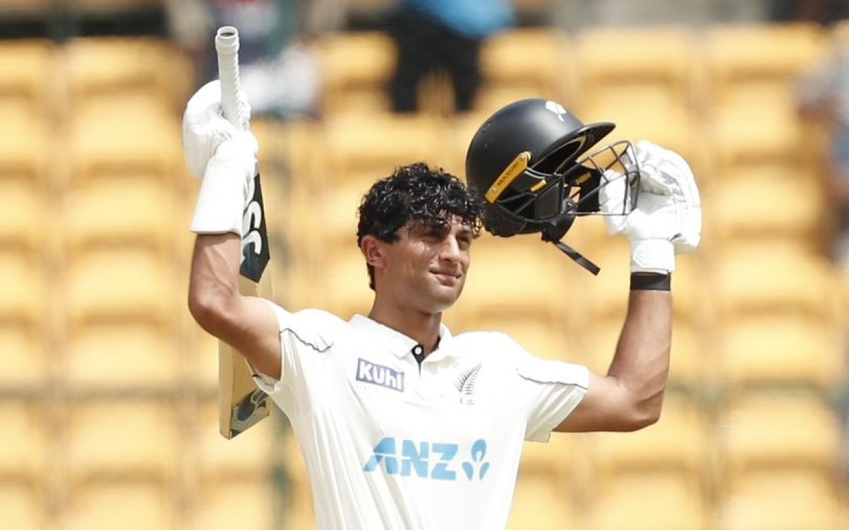 Though New Zealand lost four wickets in the morning session, Ravindra, whose family hails from Bengaluru, got up the tempo through a breezy century filled with eye-catchy 11 fours and two sixes. After weathering the initial storm, Ravindra showcased his exceptional handling of Indian spinners by picking lengths early to play shots on front foot, back foot and down the ground, while using depth of crease well.