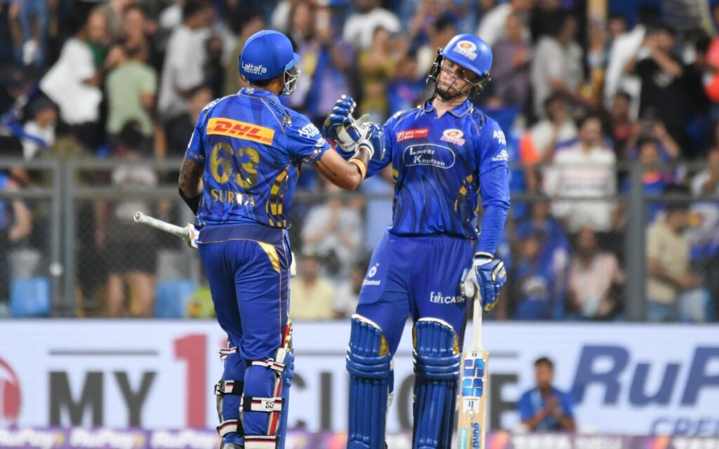 Rickelton scored 62 not out off 41 balls, hitting four boundaries and five maximums, raising 46 runs for the opening wicket with Rohit Sharma (13) and 45 with Will Jacks (16) for the second wicket. Suryakumar Yadav, who sealed victory with a six, remained unbeaten on 27 off nine balls as Mumbai romped to victory with a lot to spare.