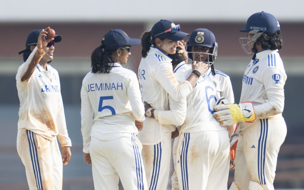 Earlier in the morning, India had batted superbly in their first innings, with Shafali Verma scoring 203 off 197 balls (4×23, 6×8) and Smriti Mandhana contributing 149 off 163 balls reaching 525/4 at the end of the opening day. Harmanpreet Kaur and Richa Ghosh, who were batting on 42 and 43 respectively at stumps on Friday, duly completed their half-centuries as the hosts attempted to bat out their opponents.