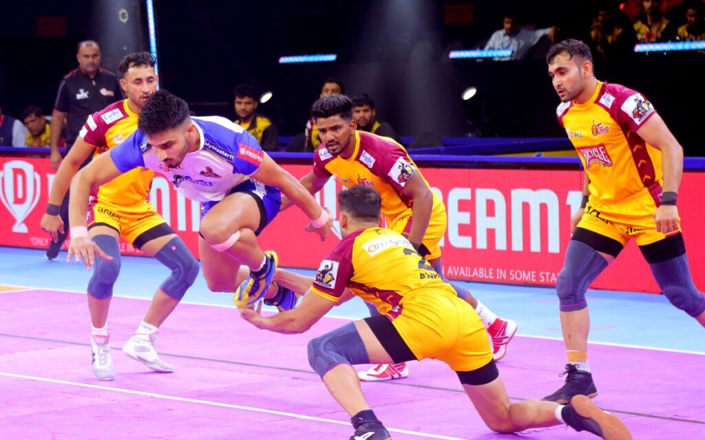 GMCB Indoor Stadium: The Tamil Thalaivas commenced their PKL Season 11 campaign with a fantastic performance, as they swatted away the challenge of the Telugu Titans with relative ease at the GMCB Indoor Stadium, Gachibowli, here on Saturday. The Tamil Thalaivas rode the brilliance of Narender Kandola and Sachin, winning the contest by a scoreline of 44-29.Pawan Sehrawat kicked off proceedings for the Telugu Titans with a Super Raid in the very first minute. Shortly after, the Telugu Titans captain picked up three more raid points to give his side a healthy lead. However, a little later, Tamil Thalaivas’ Sachin inflicted an ALL OUT as they surged ahead and took the lead on the Telugu Titans.