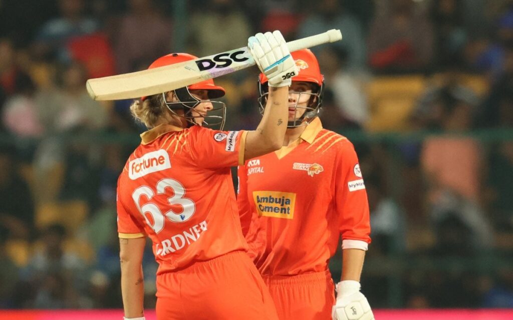 Gardner, who started with cover-driven four on the first ball she faced, turned things in favour of GG, hammering Prema Rawat for a hat-trick of fours — two on the leg side and one hit on the up over cover — and a superb backfoot heave off a short ball over deep square leg fence for a six in the ninth over, which fetched them 19 runs.